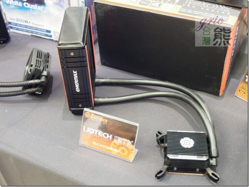圖 X30-X32 Enermax保銳這次展出重點是新上市新型的LiqTECH 120X水冷散熱器組,還有新上式的POWER,台灣熊對保銳的品牌印象極佳,從「鐵甲武士」開始建立在POWER界的口碑,以前也是台灣熊愛用的POWER,可惜近十年來沒有機會接觸,不過雖然沒有實測過,但以該公司的企業文化,相信推出的POWER應該還是有一定的市場空間與吸引力。