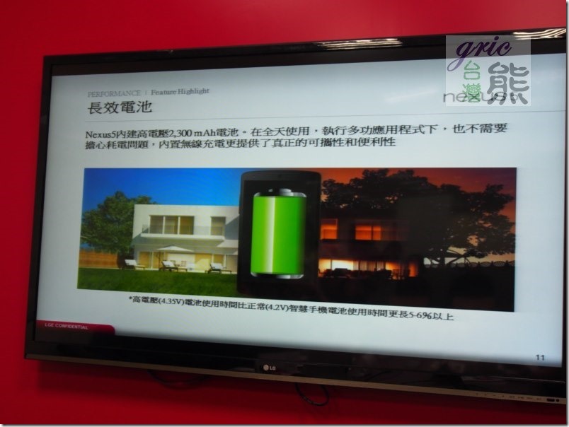 圖 G36-G37 強調Google nexus 5採用高電壓4.35V的電池,使用時間比一般採用4.2V的電池會多上5~6%的續航力。