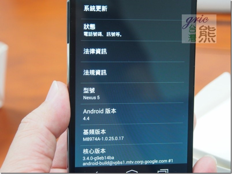 圖 G51-G58 Google nexus 5的握持與單手操作情形還不錯,機內簡單基本資訊就請自行觀看。