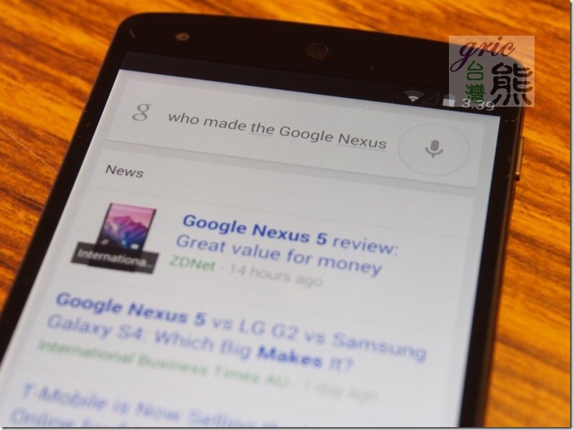 圖 G74 熊也用自己菜菜的英文來玩一下OK,Google! 還不錯耶~他正確辨識與自己推薦了Google nexus 5的相關資訊給台灣熊…。