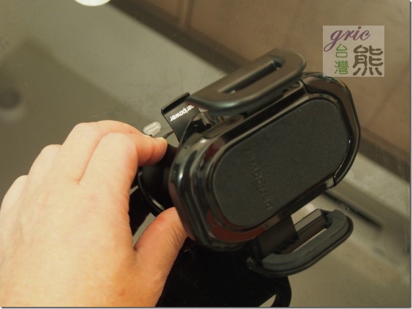 要取下手機時只要按下背後按鈕,鬆開手機抓鈎就可以取下手機。