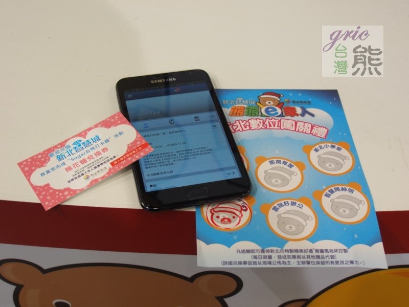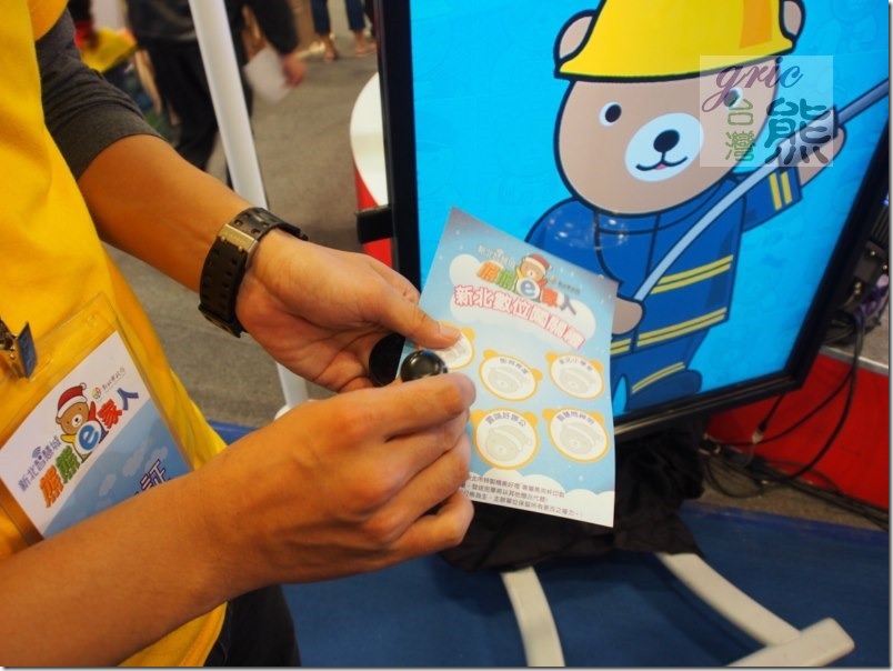 圖 E06-E08 經過親切的服務人員回答之後,並嚕出一張新北智慧城熊熊e家人的「新北數位闖關禮」集章券,原來只要闖關成功就有好康可以領取。