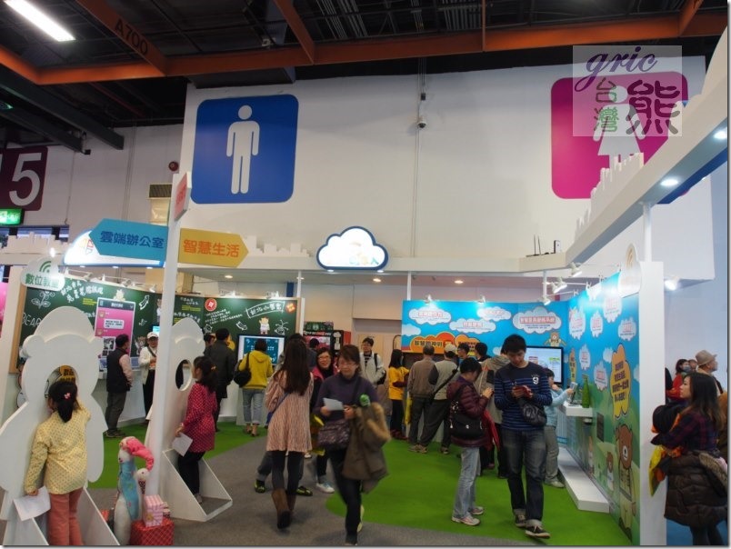 今年新北市政府資訊月的「新北智慧城-熊熊e家人」展示館位置在靠近莊敬路的A區15號出入口,位置算是不錯,如果由莊敬路A15入口進入右邊是TWNIC的攤位,左邊就是新北市政府資訊月的「新北智慧城-熊熊e家人」展示館。