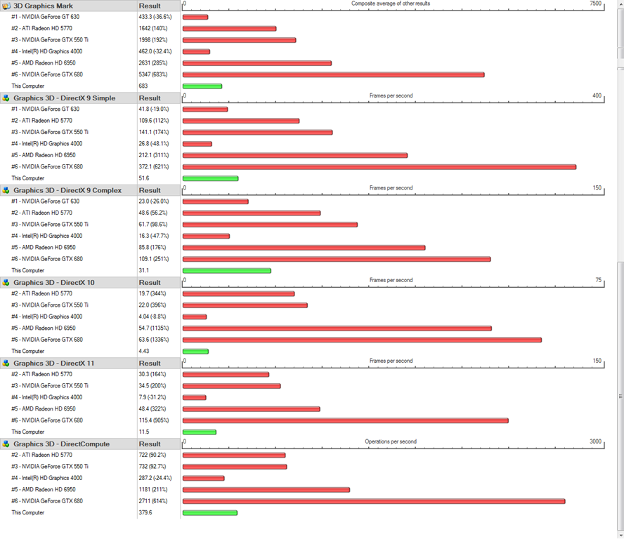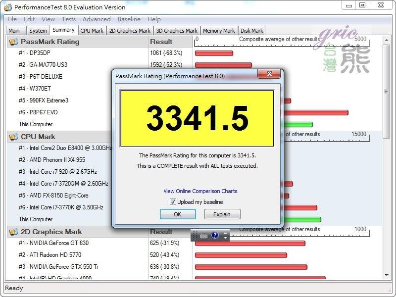上面是效能有關的部分,底下是3D、圖形與遊戲有關的測試成績。
