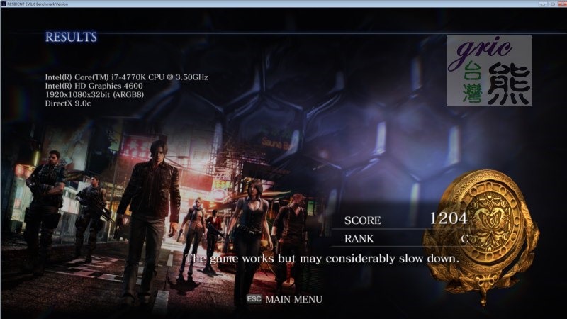 圖 L35 Residen Evil 6 Benchmark : 1204 / RANK C 。