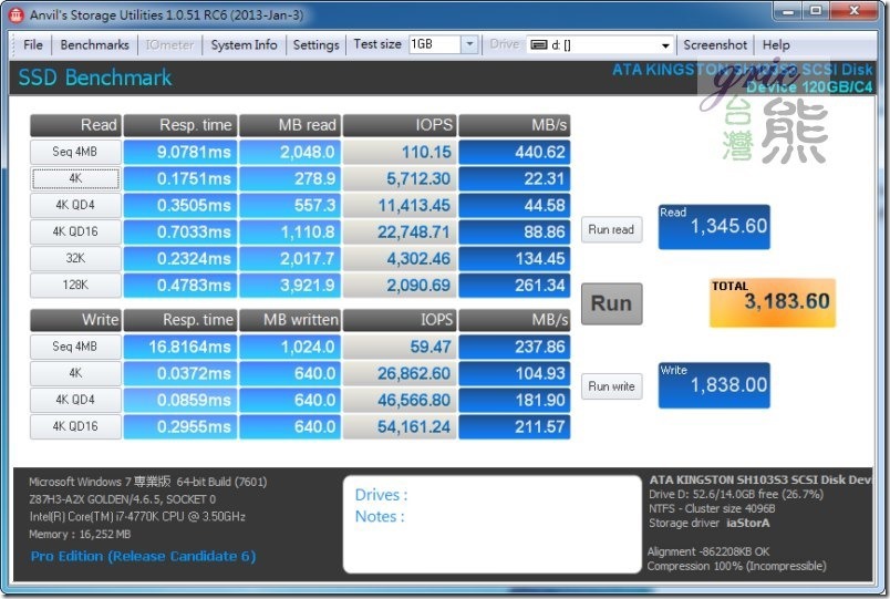 精英黃金旗艦L337 Z87H3-A2X GOLDEN搭i7-4770K旗艦CPU效能實測,含Kingston SH103S3 120G SSD開箱