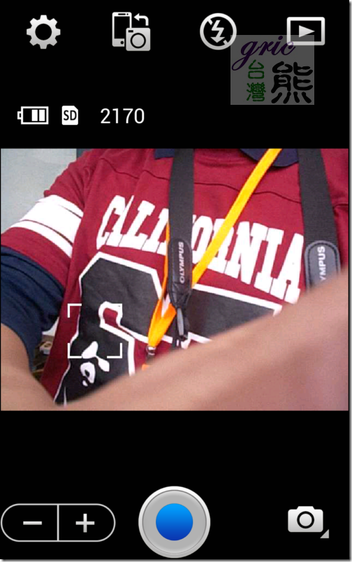 圖 A07-A10 這是開機後的Cubic,面對鏡頭左側是Zoom IN / Zoom OUT(3X光學變焦),所以這機型以習慣右手持、握、操控手機的人來講相當適合,由左手持握時利用大拇指進行放大與縮小控制,食指對焦與按壓快門拍照,右手負責掌鏡(螢幕畫面)監看,當然也有其他的握持與拍攝應用,待會熊分享一些,其他的交給您自己發揮創意來使用咯!