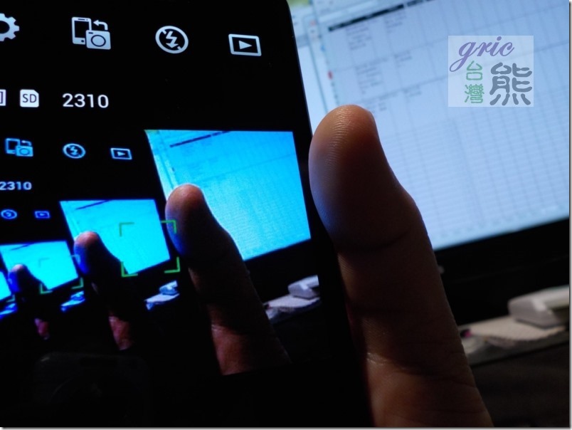 圖 A22-A23 因為一手要拿相機記錄下實際測試的過程,發現還不錯的持用方式,這樣右手可以按上面的快門,或是更輕鬆的由手機螢幕觸控操作Zoom In/Out與其他設定或拍照功能。