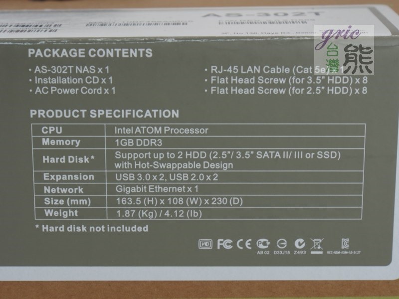 ^(I)^ ASUSTOR AS-302T開箱與規格資訊
