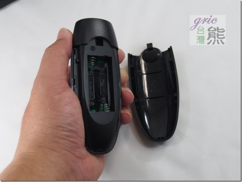 圖 A07-A09 這個遙控器設計的還不錯,簡單明確好操作,握持感也相當良好,使用兩顆AAA四號電池。在這裡也提醒一下,中央最上面的電源符號按鈕,在配合操作時也會拿來做為”跳出”的功能使用。