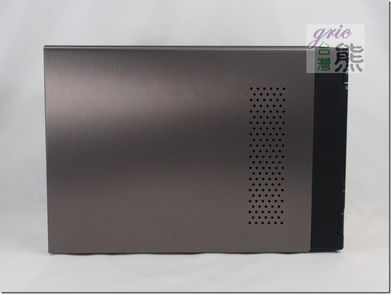 圖 A10 主角現身!右上角的小圓點就是紅外線接收器位置,asustor商標下面就是電源按鈕與指示燈。左邊下面USB 3.0插孔位置是一鍵COPY的按鈕。