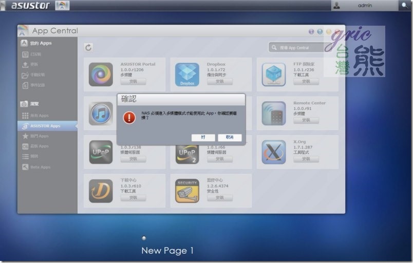 還記得前面圖A31吧!不記得沒關係,他就是點擊ASUSTOR Portal這個app之後,AS-302T自動會將相關執行這個功能需要的app都自動抓近來安裝,不用你費心一個一個去點擊安裝。