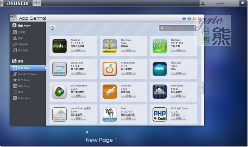 全部共分11頁,每頁12個app所以是總共有121個app! WoW ~ 還記得一年多前第一次接觸華芸的NAS,當時首創App Central印象中app總數90不到已經是相當齊全了,才隔一年來到121個…真是嚇人!當時熊說過NAS不只是NAS,現在不只如此,應該說發展下去NAS不只不是NAS而已,取代某些東西的功能悄悄的在發生…。