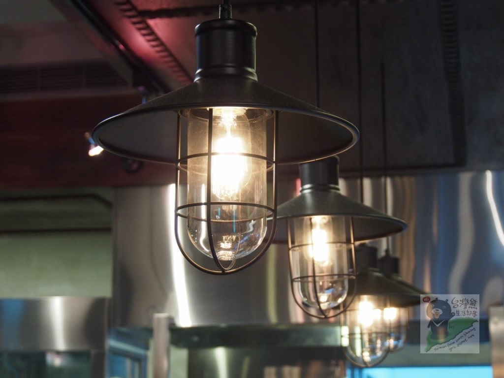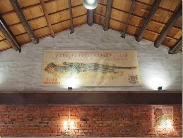 除了濃濃台客風格的佐料檯之外,抬頭看傳統的屋樑之下還有一幅似乎是荷蘭時代台灣地圖(不知有沒有記錯…XD),不過這一張很是特別… WoW…透過特寫不難看出他是一張新時代的美食(材)地圖,由南到北將台南玉米筍、…新社杏鮑菇、…淡水可口魚丸、…澎湖的花枝丸…,因為很多…就不一一詳列。還有燈的風格,也跟其他空間不同。