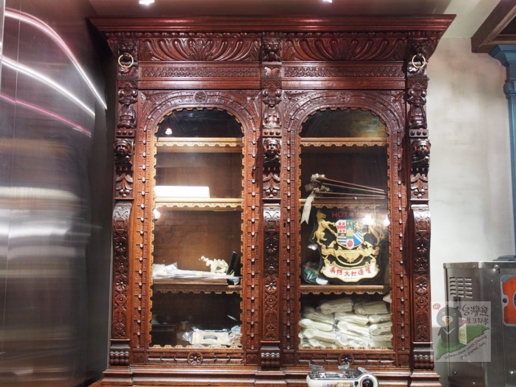 從餐具櫃到椅子,由牆壁及壁燈到椅子,呈現的都是相當好的用材與巧妙的混搭風格,像是要把巴洛克與台灣風給串連起來似的。