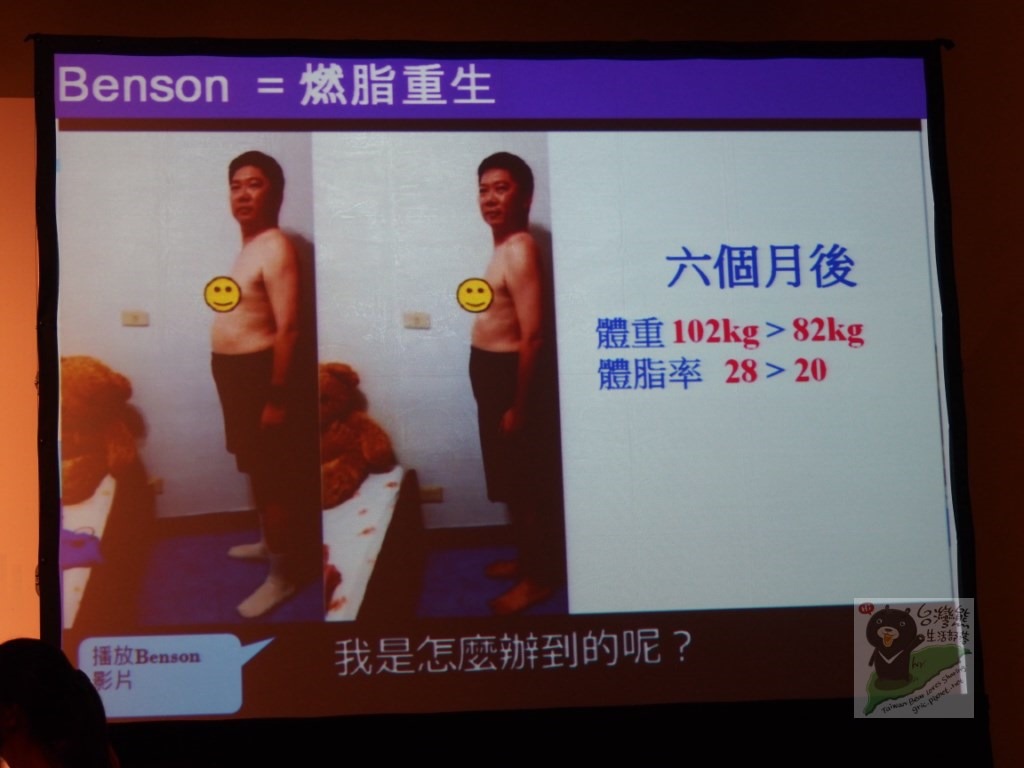 今天全場最震撼的莫過於Benson的血淚分享...關於減肥這件事,該試的他都試了,也為了親身試鍊與正確推廣健康又正確的減肥,Benson連證書都去考了下來,所以決心毅力令人佩服...,看到關鍵字了嗎?要成功還是要有"決心"還有持恆執行的"毅力"!