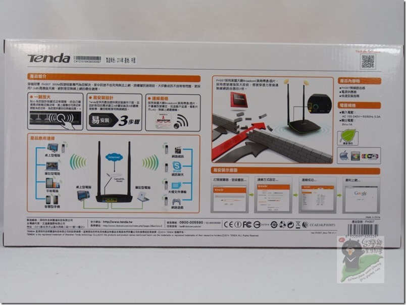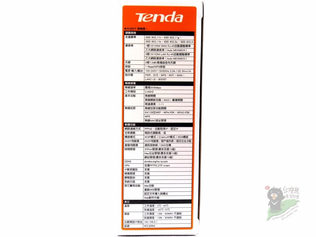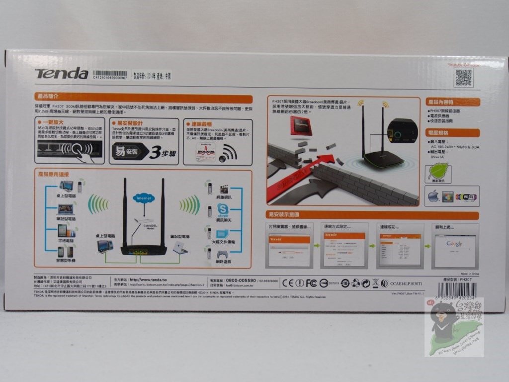 #gric #台灣熊 #開箱 #評測 #Tenda #FH307 #穿牆怪獸 #無線路由器 #11n #訊號增強 #騰達 #ICT #Broadcom #分享器 #數位家庭 #SOHO #無線上網 #4C #3C #大空間無線網路分享器