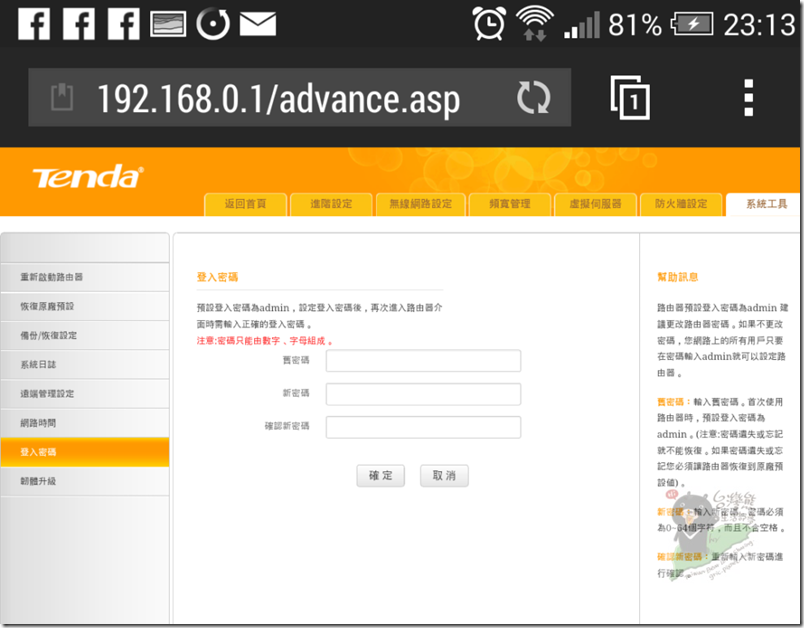 圖 F21-F22 ↓ 記得有線網路的管理者密碼也改一下,這樣你的網路才會安全一些些。