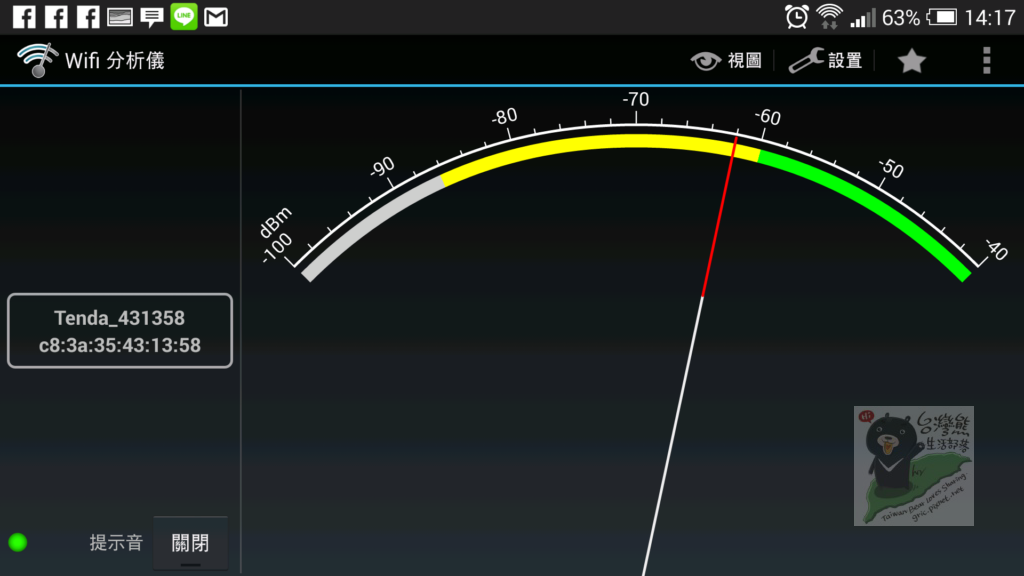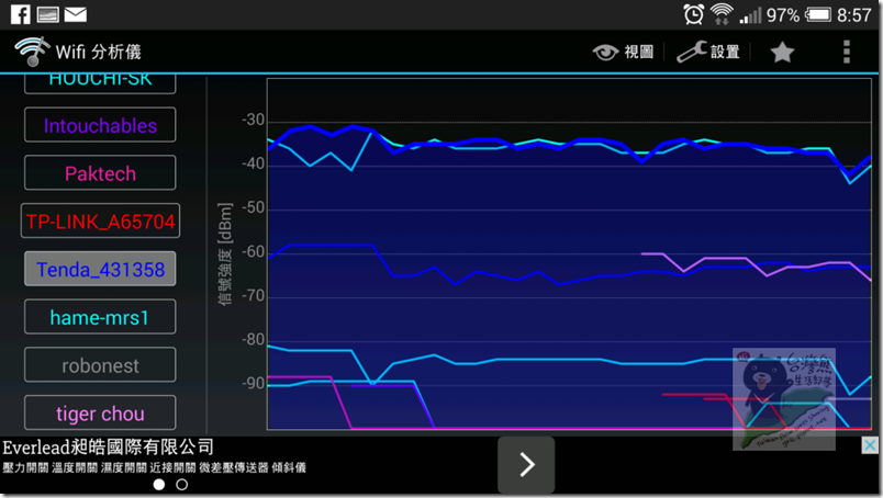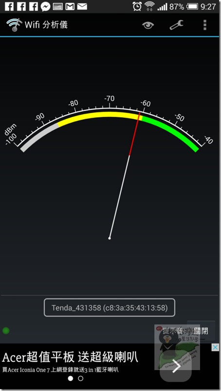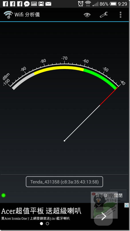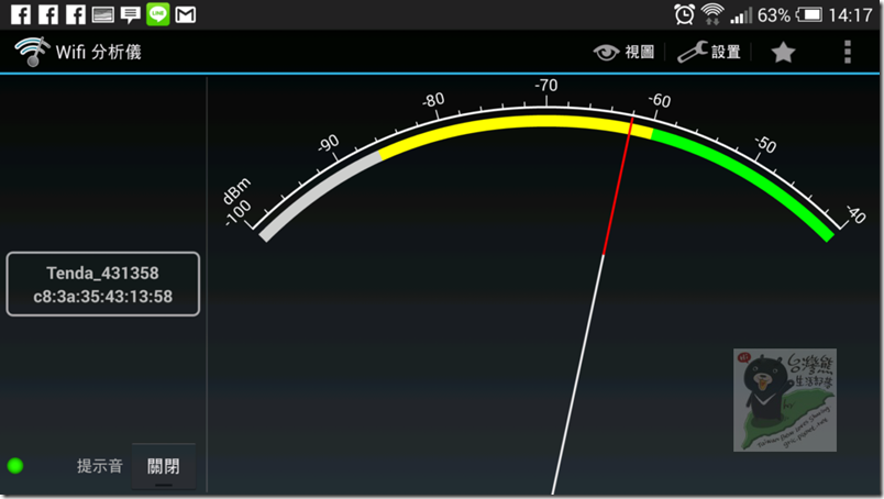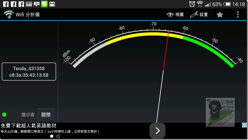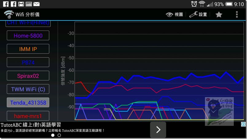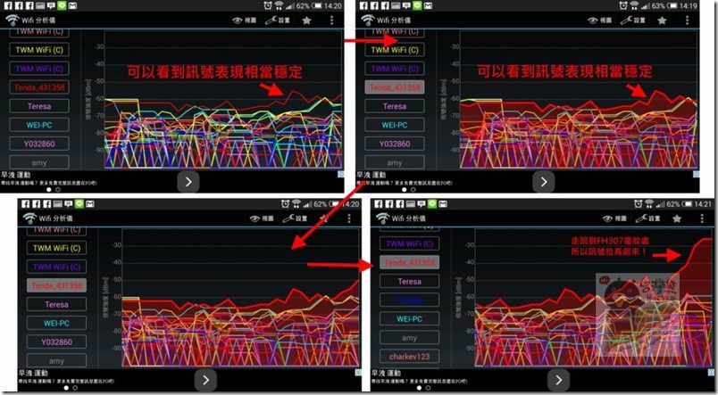圖 F58 ↓ 整個完整的TENDA FH307測試的過程,包括上網的順暢體驗,其實關鍵確實不只是訊號強這一點而已,另一個關鍵,也就是上網順暢舒適與否的關鍵是訊號的穩定度。