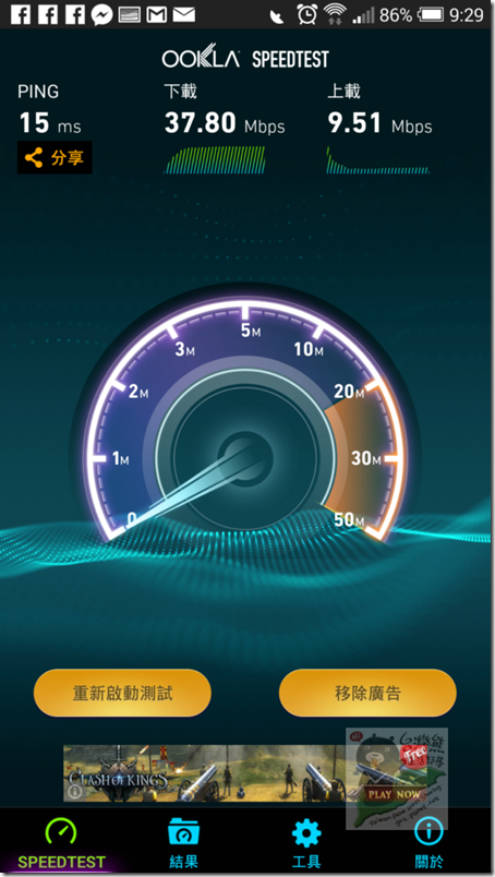 圖 F37-F38 ↓ 就真的只用HTC ONE MAX搭配TENDA FH307做測試,看看是不是讓行動一族通通OK!