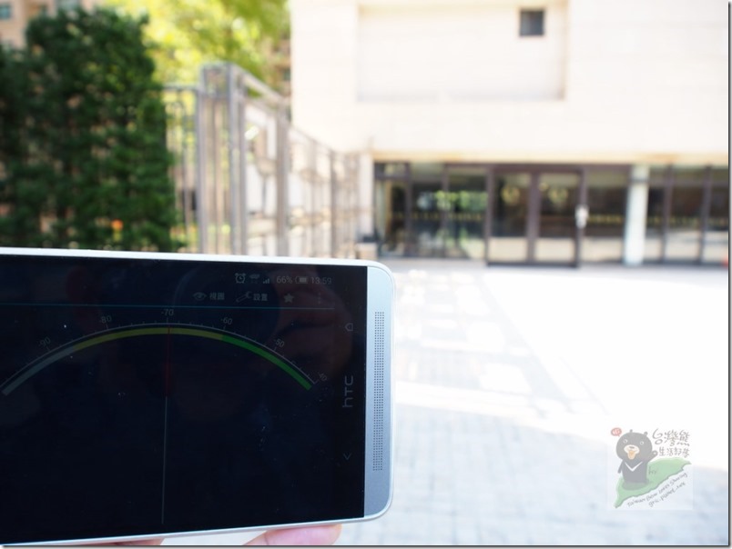 圖 F44-F46 ↓ 這三張分別是在近40公尺、近50公尺與近70公尺左右進行的測試,數據分別是-60dBm、--56dBm、-69.5dBm,表現相當不錯,其中最遠的還要穿過一道玻璃牆。