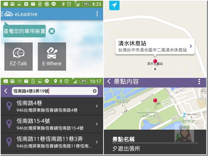 清晨國道車較少,比較好開車!早點出發可以讓兩天一夜的行程更加悠閒或是玩更多景點,所以5點出發、7 點出發都是好時間,當然型前的規劃不可少,包括時間餘裕要不要增加的景點、或是刪減的景點,吃些甚麼、想要玩的、看的…,還有包括住宿的預定…等,這時候剛入手的eLead SMART HUD車聯網抬頭顯示型的導航與行車記錄器立馬就派上用場。前幾天陸續把旅遊景點與住宿及休息站等資訊輸入手機裡的E-Where app裡面,一清早上車不只可以聽到親切的”台灣熊您好”,還會幫你啟動資料同步,然後將預設的景點與目的地直接上傳,你只要按下”確定”就可以了!因為這樣的便利,所以這次的旅遊行程不再是台灣熊一人規劃,而是全家參與再匯整到E-Where裡,連開車都多了一個得力助手,以前都以不識路為理由的熊家女王這次也幫忙開了數百公里的路,讓旅遊真的是全家樂!