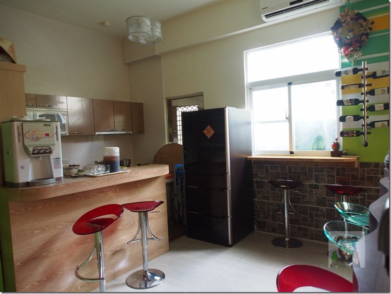 離開客廳往內走,就是吧檯型廚房與用餐區,人家說麻雀小五臟俱全就是這樣。往左上樓就是房間區了~.~