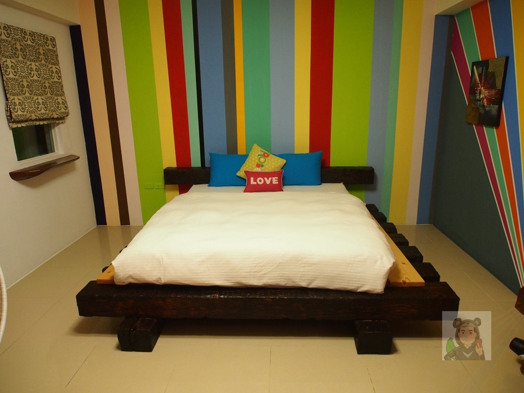 阿嘉耕逃的房間,每間都有走不同的風格,各有特色…,房型的分布2樓一間蜜月級的雙人大房…會讓你哇~一聲的那種,3樓左右各一間雙人房,4、5樓是四人房,6樓也是會讓你睜大眼睛的雙人房,每一間都直接採光,窗戶直通戶外,2樓、6樓有大陽台…3、4、5鄰馬路這一側也有小陽台,所以住宿的品質相當的好!