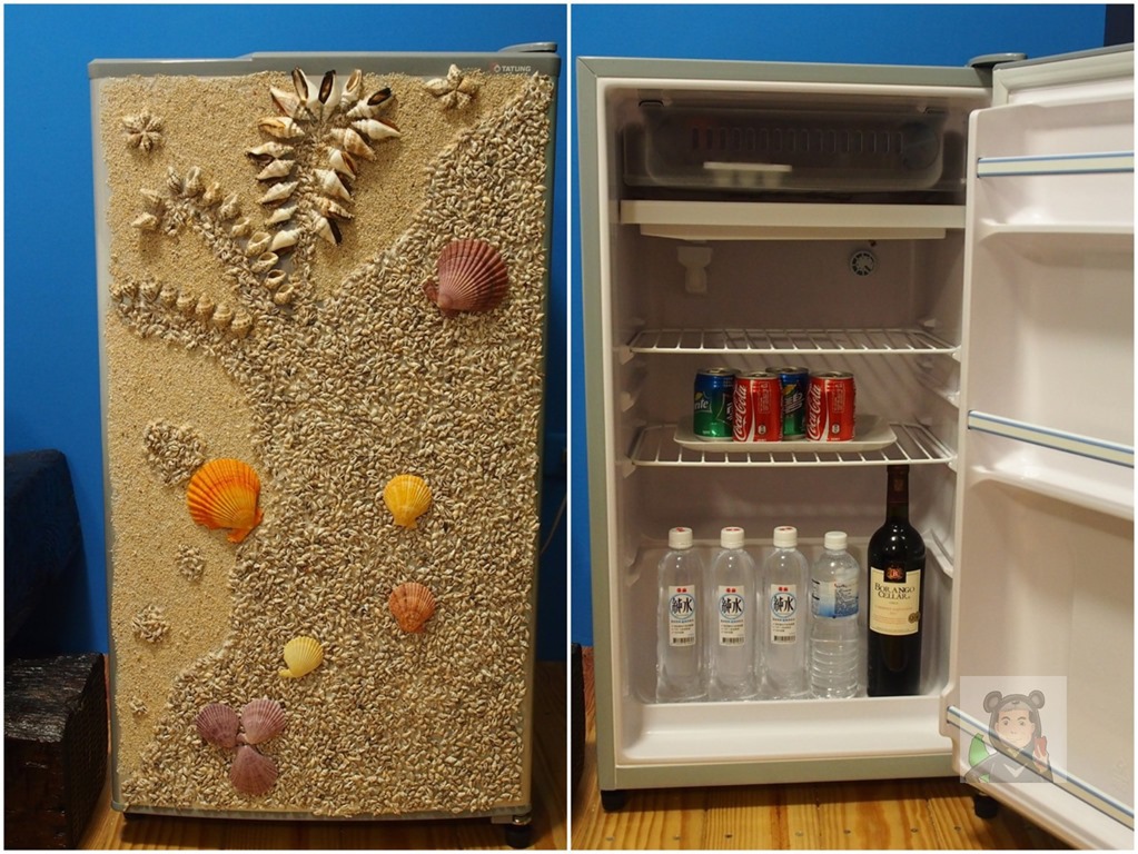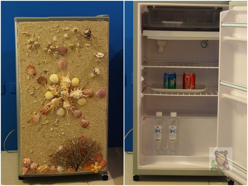 看到這門了嗎? 這門與入門時看到的冰箱都些滿了沙與貝殼…哇~~~南島風情瞬間湧入屋內的感覺!