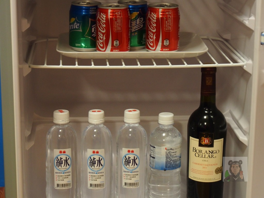 冰箱有4人的飲料與礦泉水,還有招待一瓶紅酒,是剛剛台灣熊在參觀其他房間時小管家送上來的,真是謝謝老闆阿嘉^^!