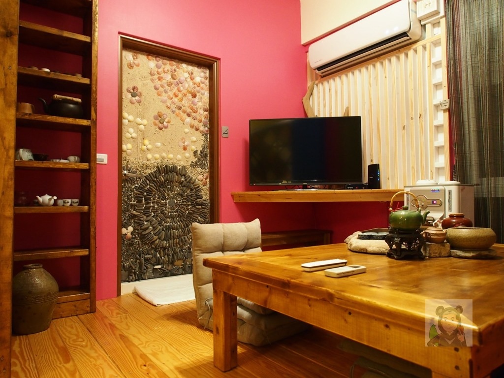往另一邊走…別有洞天,真是喝茶聊天的好所在…,對啦~~~ 有茶具,阿嘉還提供不錯的茶葉,這也是招待…只限這間房間有,確實適合愛喝茶的台灣熊!