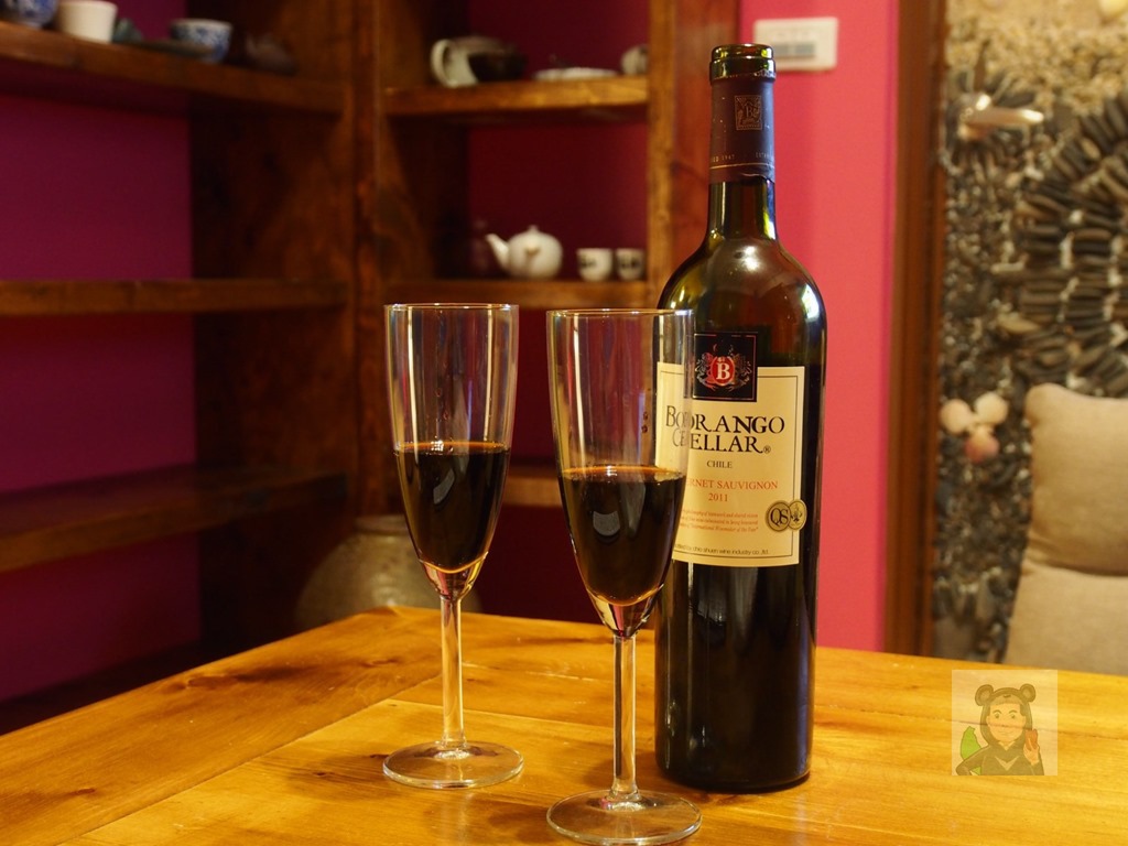 未成年請勿喝酒、禁止酒駕!還有他這紅酒是只限民宿裡面喝,不能外帶的喔^_^。