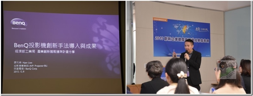 「明基電通」以自有品牌BenQ投入數位生活、企業營運、醫療保健以及教育學習領域,提供多元產品,自101年起參與工業局計畫輔導,導入前述三套創新方法,探究市場隱性需求與顧客經驗歷程,將技術創新的重點轉移到消費者創新上,解決消費者對於投影機笨重、小空間安裝上不便、開機時間過久等問題,激發BenQ產品與服務的創新,後續更鎖定居家使用情境,推出領先全球的超短焦投影機,大獲消費者肯定認同。讓BenQ 連續七年維持全球DLP (Digital Light Processing, 數位光源處理技術)第一的領導品牌地位,Full HD投影機的市佔率也不斷攀升,以23.1%高市佔率穩居世界第一,也讓BenQ Style的時尚設計備受國際肯定。