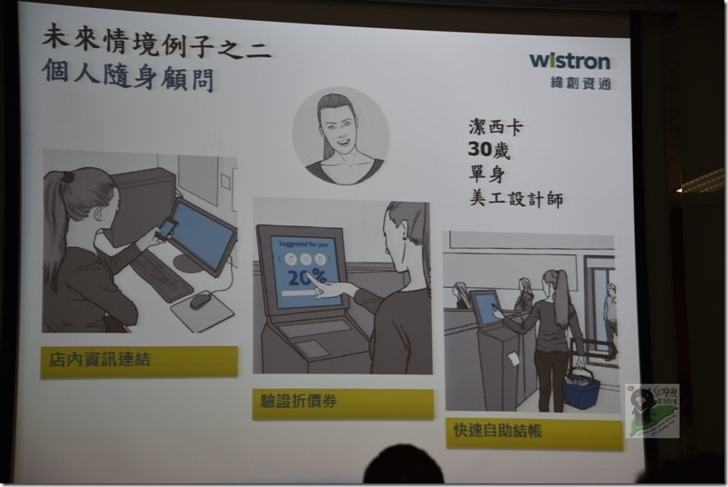 緯創也以「商務顯示器支行為事設計導入未來超市的應用」為題進行專案報告,相關的資料如下: