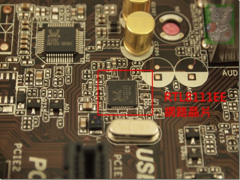 Realtek 昱瑞科技的IO大將,RTL8111E(圖片多打了一個E...在這裡更正一下)這個Giga網路晶片還有ALC892音效晶片。