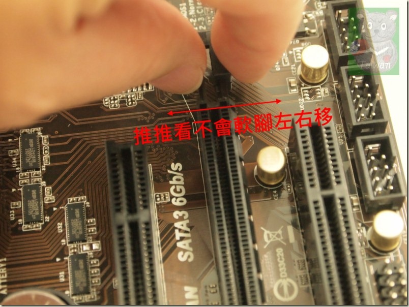 顯示卡的固定卡榫是採用軌道式拖拉型的…對這裡的設計熊有些疑問提出來供ASRock參考一下。