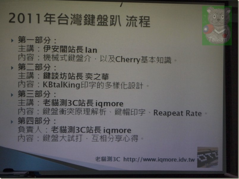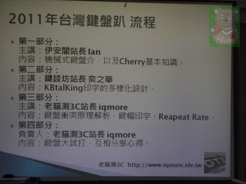 (看似)一切就緒後、台灣松鼠界...嗯~台灣鍵盤界的一大盛事 " 2011 年台灣鍵盤趴 " 就在熱情、陽光、年輕的老貓支持與宣佈之下開趴啦!