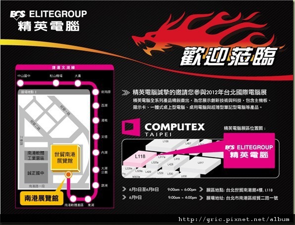 精英電腦在2012電腦展中,將為您呈現一系列獨家Nonstop技術的產品,此技術不但導入最新產品中,在效能上更是大幅提升穩定性與可靠度。精英電腦的位置將位於南港展覽館4F攤位118號。