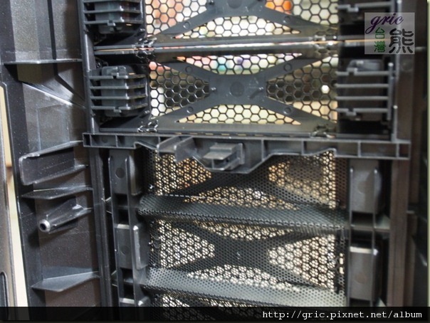 由圖I17可以看到用心的設計,為了不讓充滿透氣孔的洞洞前面板強度不夠還在中間加了支撐,這算是中流砥柱就是了!