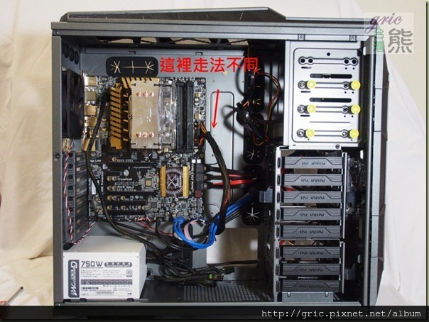 另外就是上方的開孔(圖i35左上箭頭處)可以讓MB的4/8PIN電源線可以”繞背”進行安裝,看過熊之前的部分開箱文就知道這一個位置的開孔需求熊期盼了好久…終於在GRone身上看到真是感動。