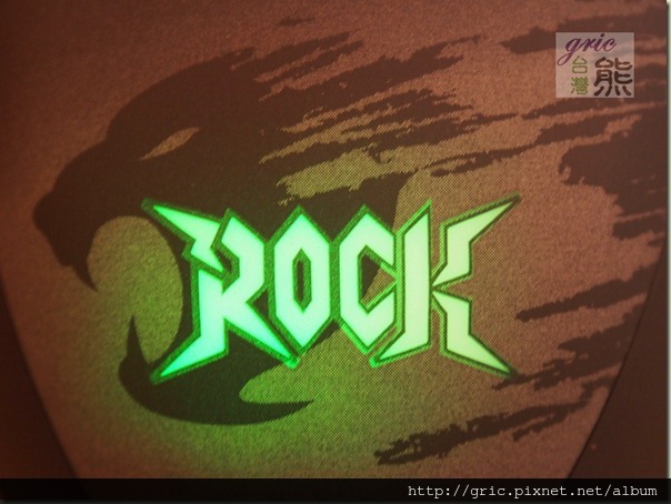 圖 M01 魅影般地子猛豹上面壓上ROCK字樣,讓滑鼠威猛有勁…應該不是有其他含意吧(笑~)。