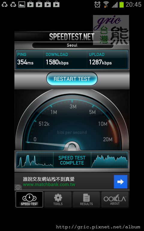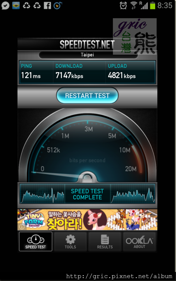 圖 T02 4G Koera(Ping 121 ms /下載7147 kbps /上傳4821 kbps)