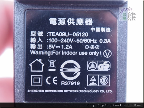 輸入:100-240V / 50-60Hz / 0.3A,輸出:5V 1.2A 內正外負,用來幫手機與平板充電看來也是可以一物多用的另一優點。