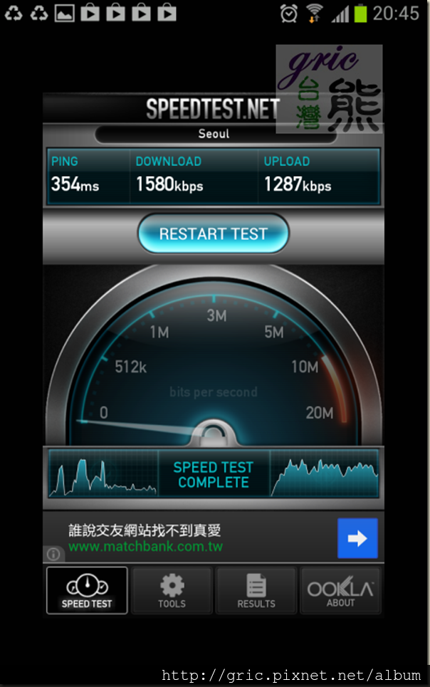 因為團友的舉動,所以導遊很自然也很自豪的提到韓國的4G/LTE上網,而且慷慨的將他的iPhone 5開啟網路分享,讓大家能夠經過他的手機上網,熊當然要給他實測一下…看導遊這麼臭屁,結果一測…。