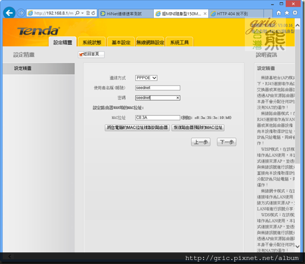 圖 T33-T37 Tenda A6 PPPOE設定過程Step by Step。