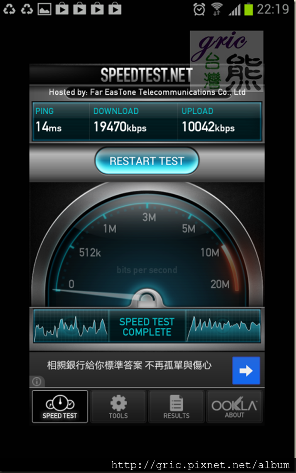 圖 T43 14 ms / 19470 kbps / 10042 kbps,表現還算不錯。