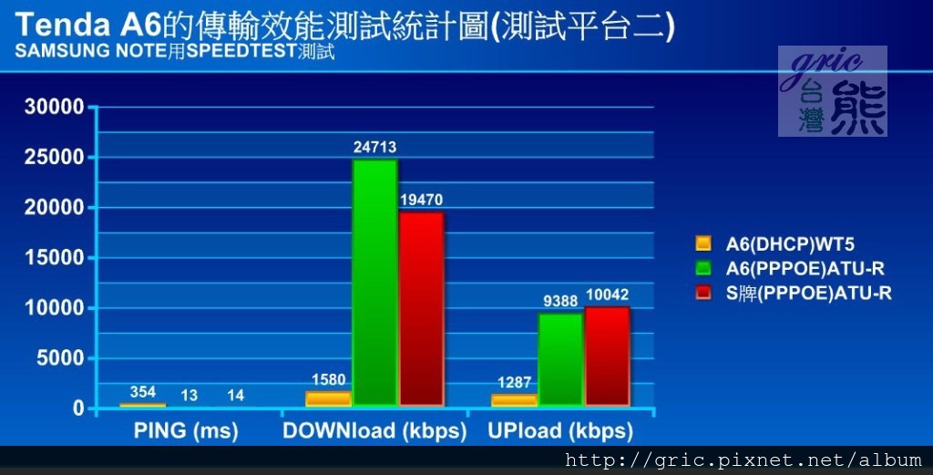 圖 T45 Tenda A6的傳輸效能測試統計圖(測試平台二)