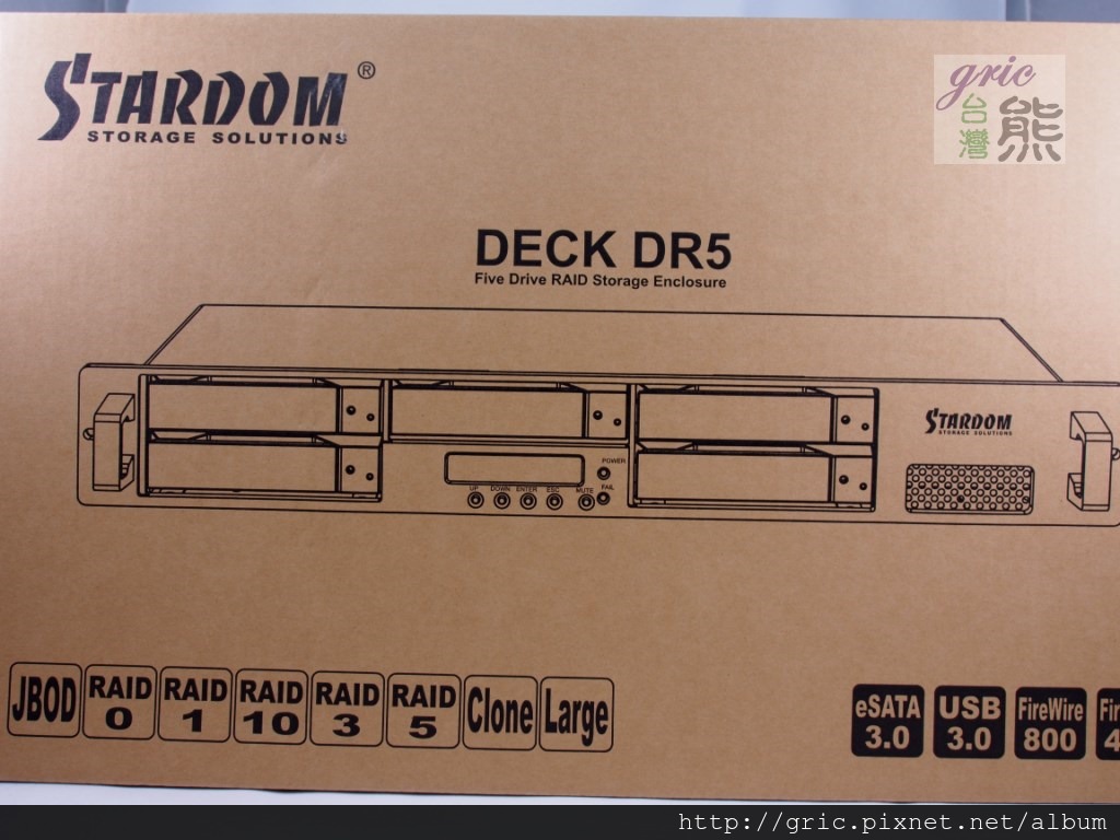 這次看到STARDOM推出新的DESK DR5是有點意外,意外的不是為何推出5BAY…是簡單的包裝符合了環保的概念,減少了油墨的印刷,為美好的地球未來盡一份心力;另外就是有網友一直嚷著沒有看到介面與格式支援超齊全的儲存裝置,除了電腦主機外應該很少看到USB 3.0 + eSATA + FireWire800連FireWire400都放在一起的儲存裝置吧…!