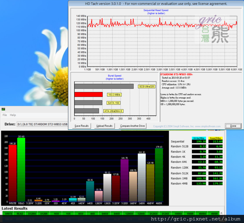 圖 D32-D35 CS ST3000NC002-1DY166搭配ST2-WBS3 RAID-0 USB3效能測試。
