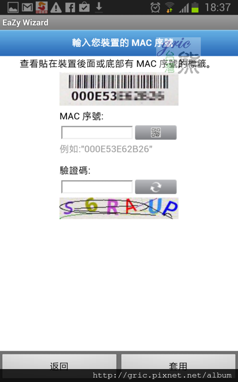接下來就是提醒您插上網路線,然後就是熊剛剛提到的閃爍後應該要雙燈齊亮,他都乖乖亮了所以熊點選兩燈皆恆亮。接下來就是輸入一開始提醒要抄下來的MAC ADDRESS,到這裡雲端註冊的工作大概就完成了。